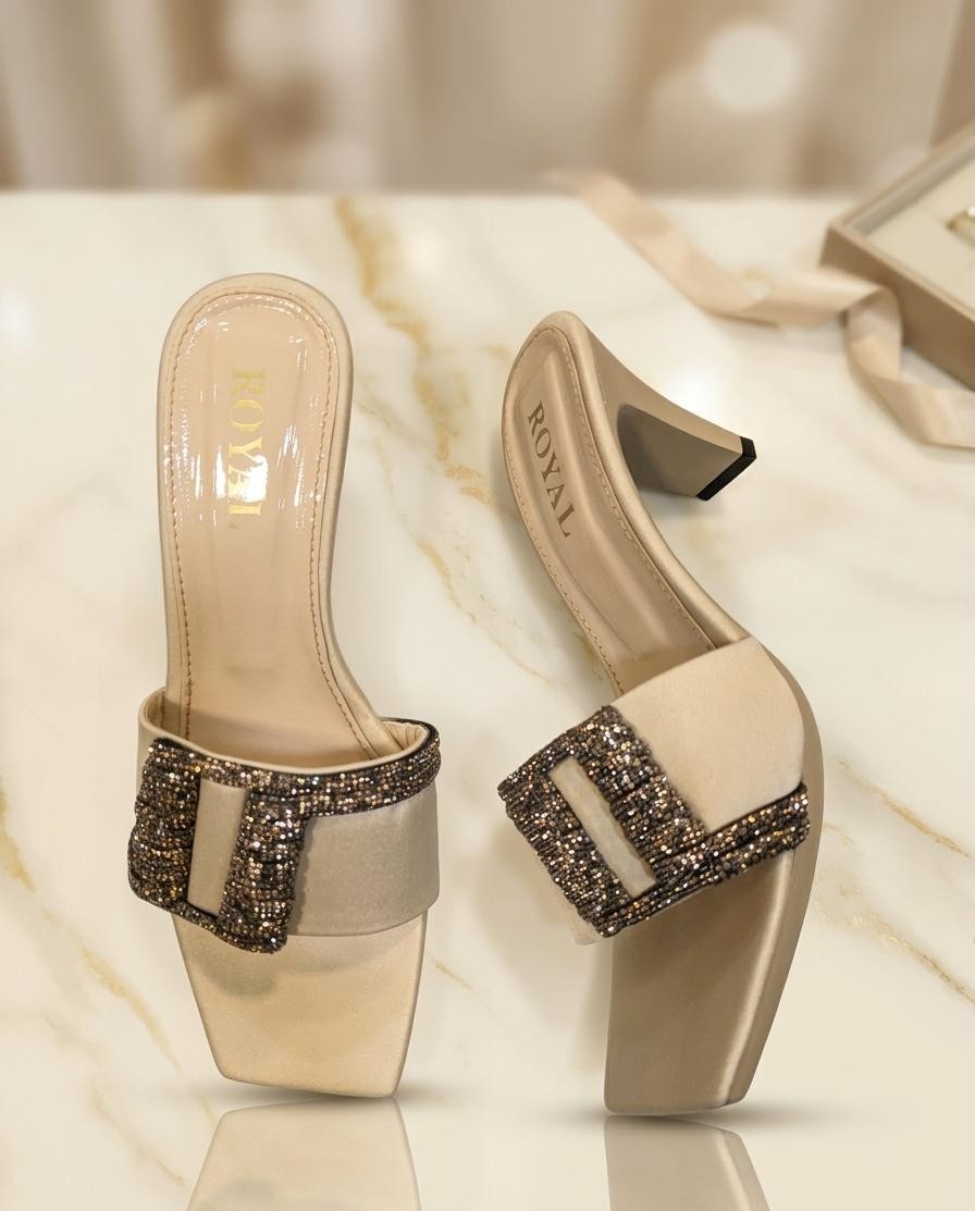 Footwear, Sleepers, Shoes, Sandals, Heels, High-heels, Khoosa, Sneakers, Kolhapuri Chappal, Kitten Heel, Jutti, Boots , Embellished Block Heels In Pakistan Sku 1775651994