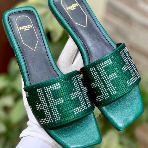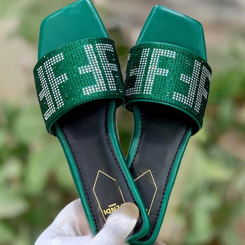 Fendi Slides With Stonework (high Quality Stonework Slides With Beautiful 3 Colors. Stylish And Elegant. Available In Green, Black And Beige Colors. Sizes : 36 To 42. Ref. Sbt)