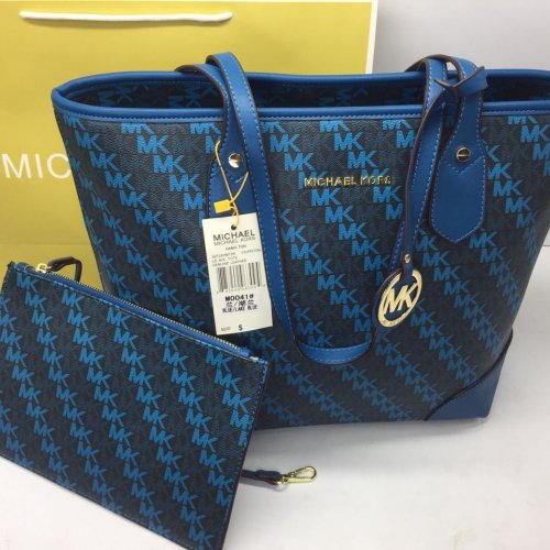 High Quality Mk Tote Bag With Pouch - Official Model With Brand Dust Cover Bag Size 17.5×11.5 Pouch Size 9.5×6.5 Brown And Blue Color