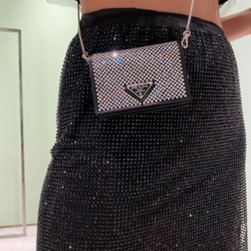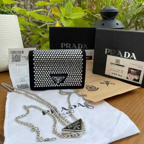 Prada Mini Neck Pouch With Rhinestones With Brand Packagingprada Mini Crystal Cross-body Premium Quality Mini Bag High Quality Heavy Chain With Brand Logo Adjustersize 14 X 10 Cmcolor : Black