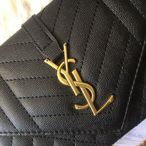 Ysl Cross-body Bag With Golden Hardware And Brand Packaging, Black Color, With Long Chain+belt, Material : Pu Leather Size: 22x15 Cm